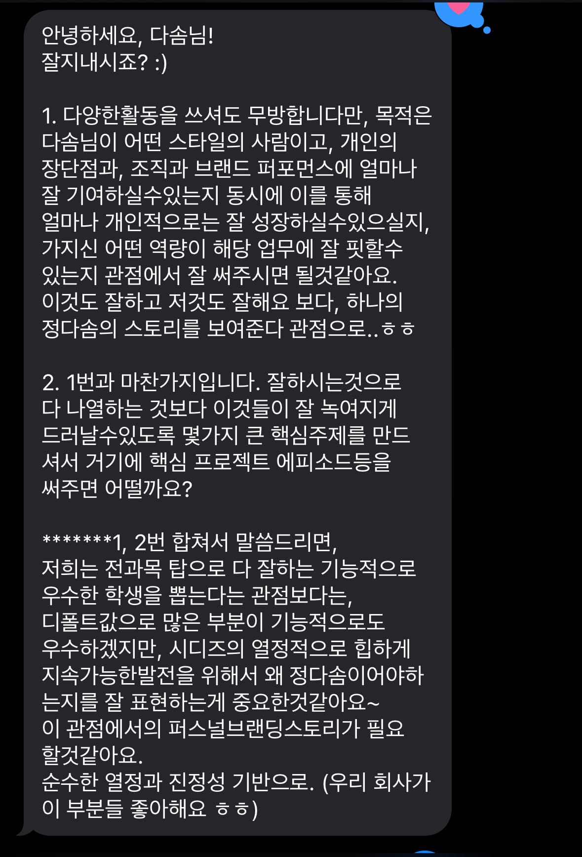 보냈는데 나의 질문지에 감명을 받고