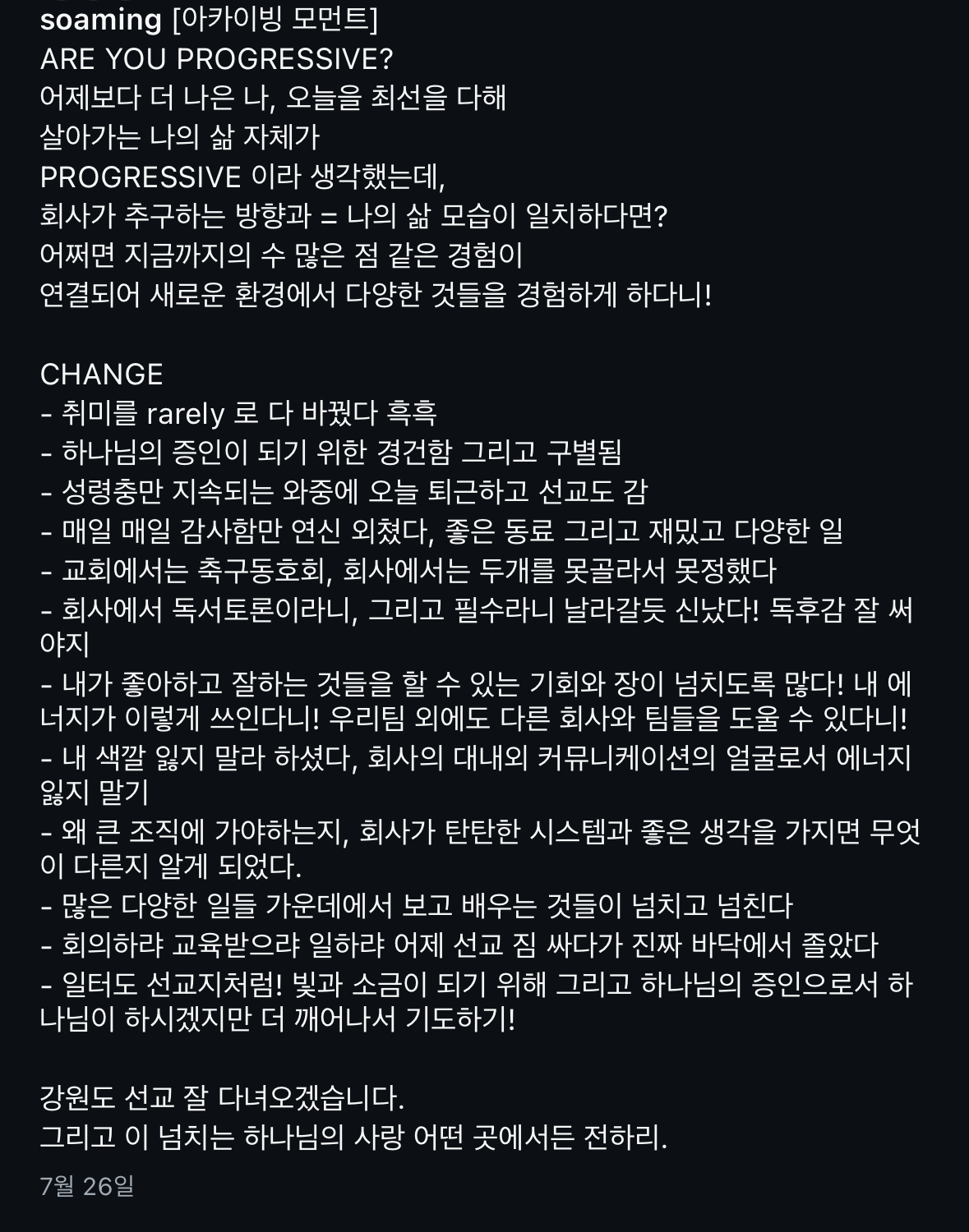 [입사 스토리의 간증]