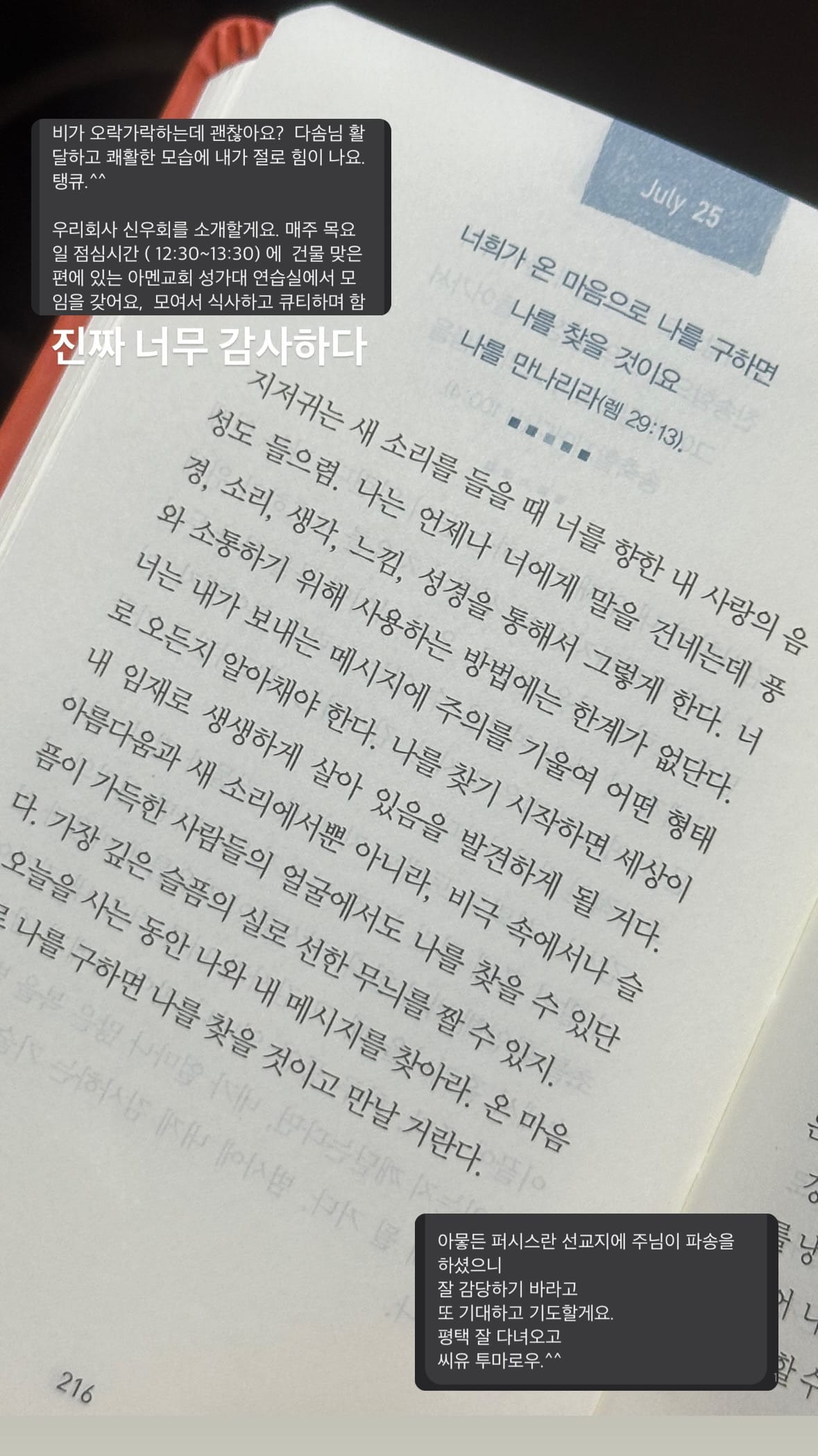 기도하다가 문자를 보냈다.